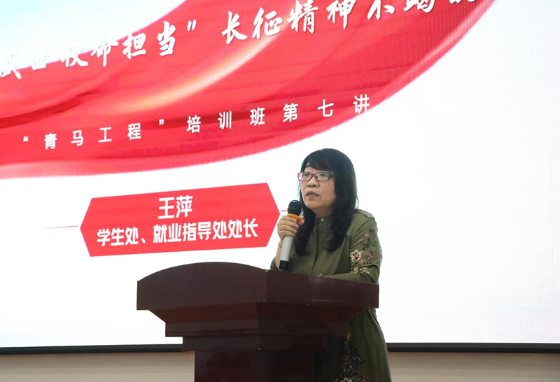 6月8日下午,beat365第九期“青马工程”培训班第七讲于主楼一楼会议室正式开讲。本次主题为《“红色初心,赓续百年”永恒的长征精神 “青春逢盛世,使命担当”长征精神不竭的动力》,由学生处、就业指导处处长王萍主讲,在座的学员紧握手中纸笔,认真记录课堂所学。