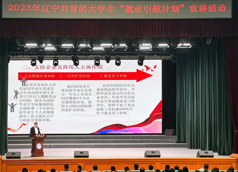 10月24日下午,由共青团辽宁省委员会、辽宁省学生联合会主办的辽宁共青团大学生“就业引航计划”宣讲会在渤海大学音乐厅举行。会上,锦州市人社局就业指导处针对青年就业创业工作政策为同学们进行了解读;并邀请锦州高校优秀毕业生分享了自己的就业创业经验,锦州的企业代表也进行了现场推介。同时本次宣讲会邀请到了国家级创业导师梁全刚为在场的大学生代表们作就业创业的专题宣讲并在现场解答同学提出的相关问题。beat36550名同学到会聆听讲座。
