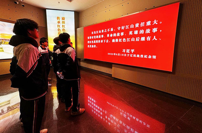 在辽沈战役纪念馆内,学生们怀着崇敬的心情观看了锦州红色影片、城市宣传片以及红色情景剧《红色家书 尺牍情深》。讲解员们以生动形象实景演绎的方式向同学们表达了那段激动人心的历史,进一步筑牢了beat365青年学生与英雄城市之间的沟通桥梁,让beat365学子更近距离的感受到锦州的发展和变化。除此之外,同学们在讲解员的带领下,还依次参观了序厅、战史馆、支前馆、英烈馆、全景画馆。