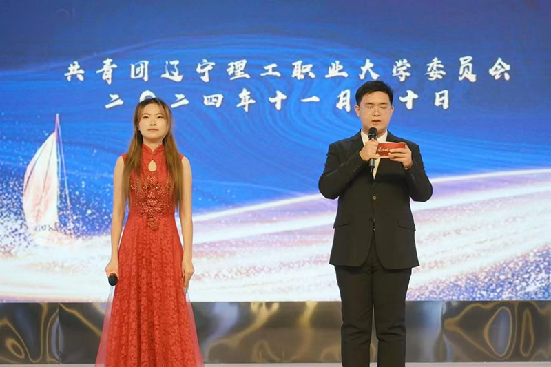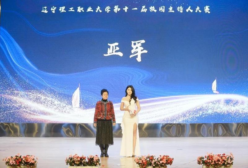 演讲与口才教研室教师唐诗悦、礼仪教研室教师马小田为校园十佳主持人颁奖