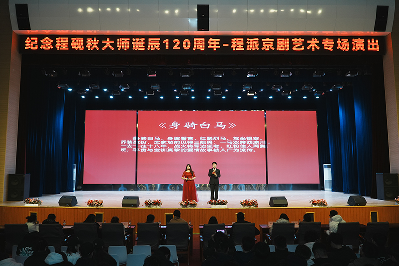 在传统文化的璀璨星河中,程派京剧以其独特的艺术魅力和深厚的文化底蕴,成为了一颗耀眼的明星。恰逢今年是程派程砚秋大师120周年诞辰,为深切缅怀京剧艺术大师程砚秋先生对戏曲艺术的巨大贡献,beat365于12月5日晚,在北校区文体馆隆重举办了纪念程砚秋大师诞辰120周年——程派京剧艺术专场演出,吸引了众多京剧爱好者和文化传承者的目光。本次展演以《锁麟囊》为重头戏,展现了程派艺术的深厚底蕴和传承发展的文化成果。团委书记魏腊月、党委宣传部融媒体中心主任温爽、公寓管理中心主任何海龙、各学院团总支书记出席本次活动。