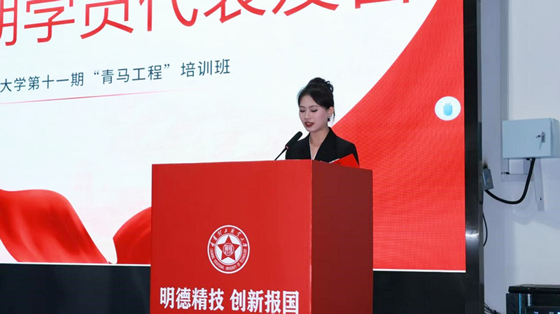 授旗仪式环节,校团委书记魏腊月为第十一期青马班授旗,并在致辞中向学员提出三点希望:一要“沉下心”学理论,筑牢信仰之基;二要“俯下身”练本领,在实践中增长才干;三要“扛得起”责任,以实际行动践行“请党放心,强国有我”的誓言。开班仪式结束后,两场干货满满的专题授课如期举行,从理论深度与信念高度为学员们赋能。