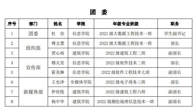 公示期5个工作日:2023年10月30日-2023年11月6日。如有异议,请向校团委以书面形式实名反馈。