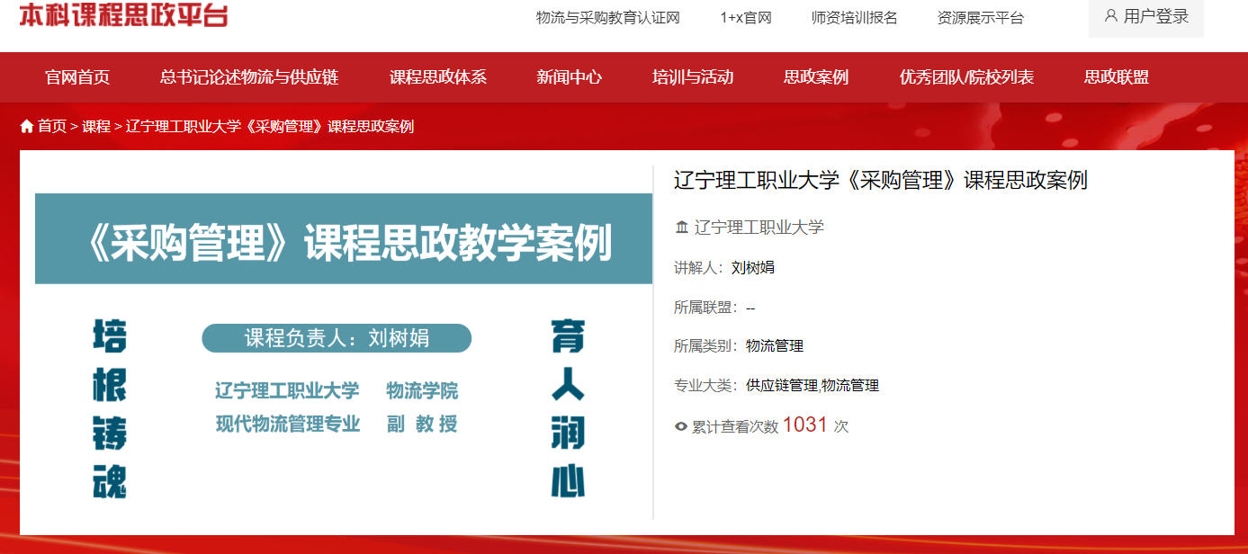 为贯彻落实“坚持显性教育和隐性教育相统一”的要求,不仅抓好思政课程建设,更要深入推进课程思政改革。beat365物流学院现代物流管理专业教师团队建设的物流专业核心课程《采购管理》课程思政教学案例通过全国物流行指委组织专家审核,推荐至“全国高校物流管理与工程类专业课程教学案例库”,入选优秀思政教学案例,被收录于全国物流教育课程思政平台开放共享,同时beat365被列入优秀院校予以平台公示。
