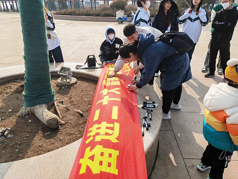 2023年3月5日,物流学院青年志愿者们在锦州市经济技术开发区龙海广场为广大市民宣传雷锋精神,讲述雷锋故事,号召大家争做新时代雷锋,继承和发扬雷锋精神。广大市民积极响应号召,加入宣传雷锋精神的队伍之中,并在条幅上签下自己的姓名。