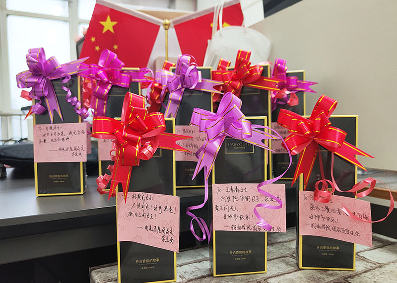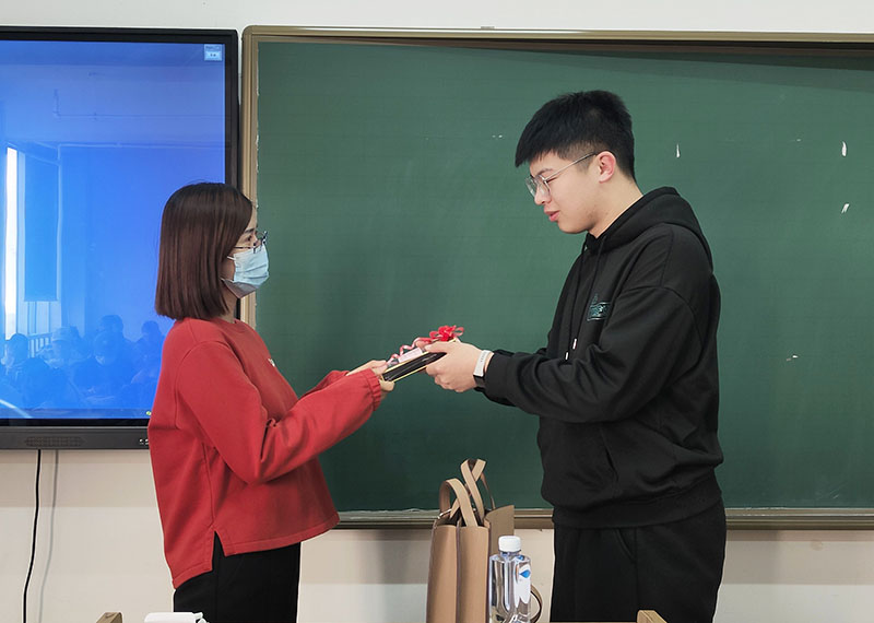 物流学院团总支学生会的同学们为全体女老师精心的挑选礼物,并且在便利贴上写下最美好的祝福,亲自将礼物和祝福送给老师,并与老师们合影留念。