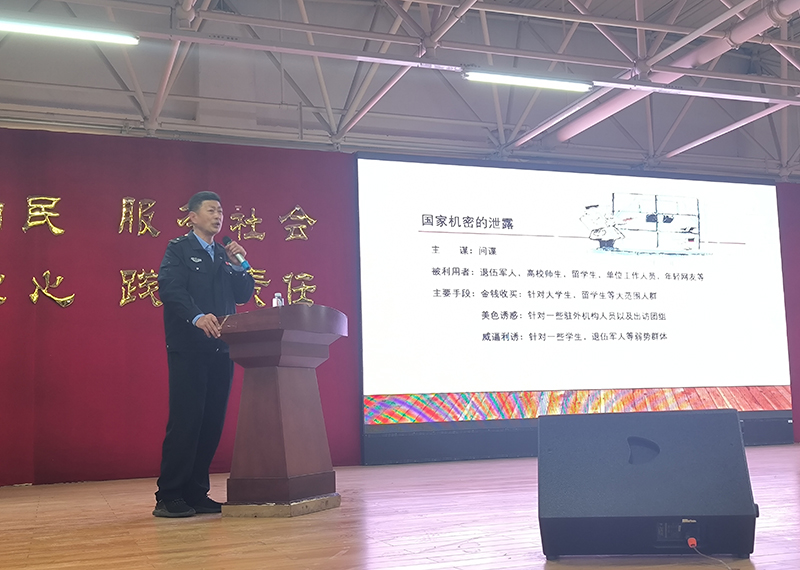 在讲座过程中聂孝亮副处长通过身边发生的案例并分享了本人曾在部队的切身经历,告诉大家提高安全保密意识的重要性,为全体师生敲响了安全的警钟,提醒大家时刻绷紧安全弦。精彩的授课赢得台下师生的阵阵掌声。