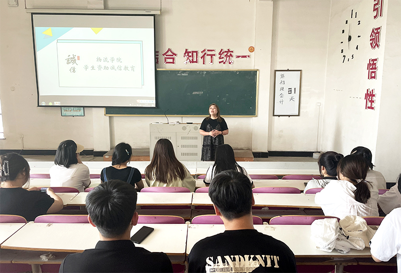 为进一步落实学生资助政策,大力推进资助育人,加强对学生的诚信教育、感恩教育和励志教育,增强学生诚信意识、风险意识和感恩意识,树立正确的消费观、成才观和价值观,2023年6月14日,物流学院在南校区阶梯教室召开了资助诚信专题讲座。