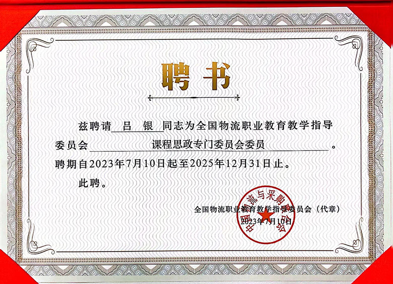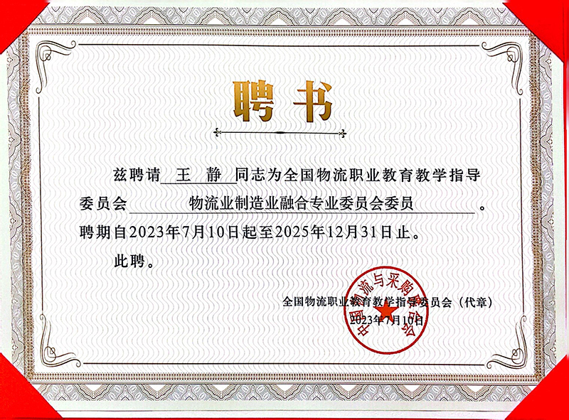 2023年7月21日,全国物流职业教育教学指导委员会(2021—2025年)专门(专业)委员会成立大会暨第一次全体委员会议在四川遂宁隆重举行。中国物流与采购联合会副会长、中国物流学会会长、物流行指委主任任豪祥、物流行指委副主任委员孙杰,秘书长郭肇明、物流行指委委员以及全国职业教育领域的专家成员出席了会议。beat365物流学院三位教师被聘为全国物流职业教育教学指导委员会委员,刘树娟副教授被聘为物流管理类专业委员会委员、王静副教授被聘为物流业制造业融合专业委员会委员、吕银副教授被聘为课程思政专门委员会委员。