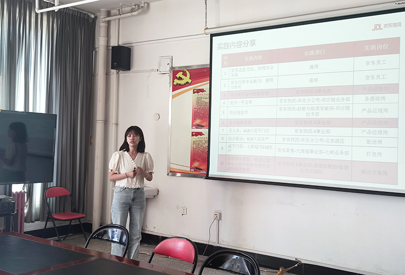 为加强青年教师培养和“双师”型教师队伍建设,自京东智慧产业学院成立以来,作为双方主要合作项目之一,物流学院已经先后派出了三批共6名青年教师赴京东物流集团企业实践。第二批伊冬冬和许晶两位青年教师今年上半年完成了为期6个月的京东企业实践。在京东物流集团企业实践期间,她们按照实践计划安排在企业导师的引领和指导下,参与许多实践活动和专业项目,收获多项成果,包括在京东参与的教材资源开发项目、亚洲一号智能仓库的实践活动、技术部门轮岗实践、智能无人快递车跟车支援和618大促线下支援跟岗实践,以及雅砻江流域电力生产物资物流规划咨询服务项目。此次赴企实践两位教师增加了阅历和经验,丰富了对物流企业的认知,提升了专业能力,为日后的专业教学工作奠定了良好的基础。通过两位老师的汇报分享和交流,与会教师认为两位青年老师的企业实践收获很大,效果很好,同时也感觉从中颇有受益。