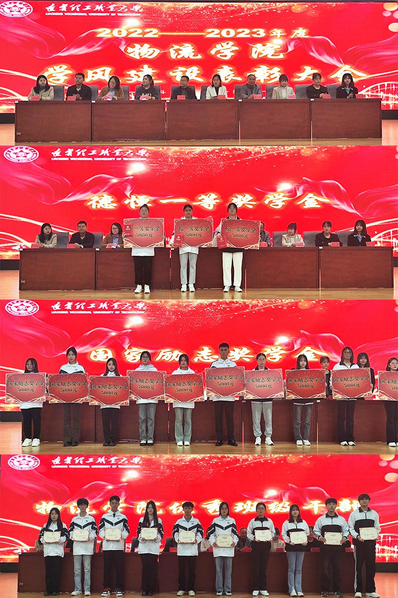 本次学风建设表彰大会由物流学院孙国莹老师主持,物流学院各位领导老师出席本次大会。大会首先由物流学院主管教学工作副院长王静宣读了2022-2023学年度获奖名单,尔后对获得国家奖学金、国家励志奖学金、先进集体、先进个人等奖项进行了表彰。