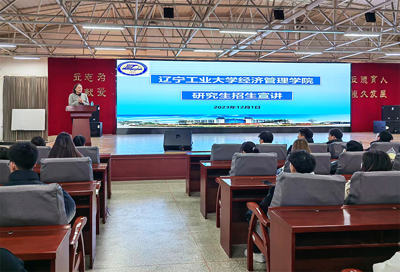 此次宣讲会,物流学院特别邀请了辽宁工业大学经济管理学院分管研究生工作副院长田琨老师为同学们进行宣讲。田老师主要结合辽宁工业大学研究生招生工作实际,从学校简介、学院简介、学科实力、招生专业、报考有利条件、报考与培养政策等方面进行了宣讲,使同学们对当前的考研形势和相关政策有了进一步的了解。在宣讲过程中,田老师还结合自身工作实际,为如何备考、如何填报志愿等同学们关心的问题给予了相关的指导,并对当前物流管理专业的发展前景进行了分析,鼓励同学们树立考研信心,积极进行考研准备。