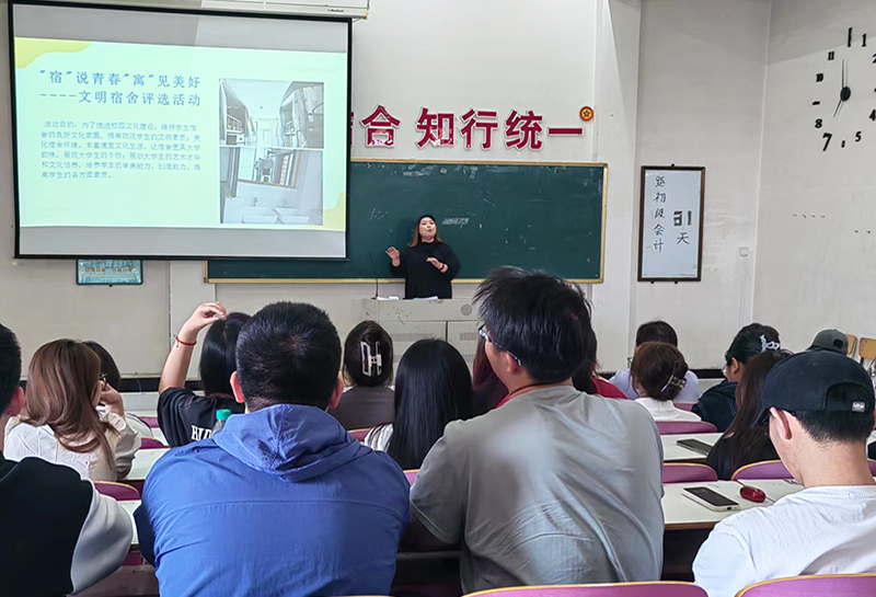 按照学校文明宿舍集中建设月活动有关要求,为推进校园文化建设,维护学生宿舍的良好文化氛围,强化学生日常行为养成,物流学院于2024年5月15日下午,在南校区阶梯教室召开了文明寝室建设动员大会。