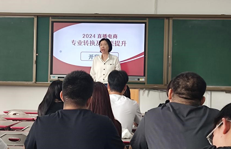 9月19日,数字商务学院正式启动2024直播电商专业转换及技能提升培训工作,在教学楼403举行培训班开班仪式,职业培训学院院长袁冬梅、副院长郭睿,数字商务学院副院长汤池,培训班任课教师和辅导员及全体学生参加开班仪式,开班仪式由培训班教师靖书博主持。