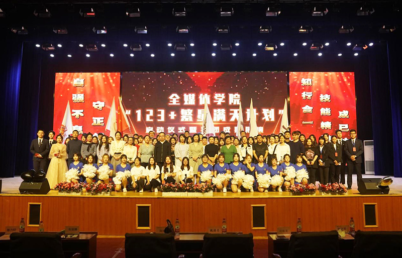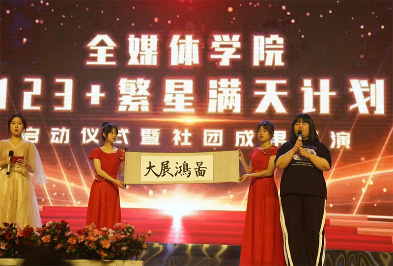 为深入贯彻中共中央、国务院《关于进一步加强和改进大学生思想政治教育的意见》和中共中央办公厅、国务院办公厅印发的《关于全面加强和改进新时代学校美育工作的意见》精神,学习宣传贯彻党的二十大,充分发挥第二课堂在人才培养过程中的重要作用,持续提升校园文化建设,丰富校园文化生活,服务学生成长成才。全媒体学院于2023年5月31日在北校区文体馆举办了“123+繁星满天计划”启动仪式暨社团成果展演活动。团委书记魏腊月、学生处副处长修力轩、公寓管理中心主任何海龙、全媒体学院院长汤池、书记张丽娜、副院长侯旭芳、副院长韩静,以及学院全体辅导员老师和部分实训中心教师参加了本次活动。