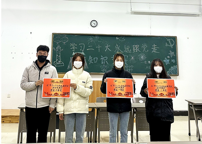 比赛伊始,主持人介绍了本次参与比赛的8支队伍24名选手。阐明了本次竞赛内容涵盖中国共产党党史、《中国共产党章程》、党的二十大报告等内容,介绍本次活动的赛制,分为个人必答、团队抢答、风险选答三个环节进行。随后,8支队伍采用手机线上答题的形式,分组依次作答,围绕党史、二十大知识进行激烈角逐,同学们以智慧对决、凭实力比拼,在保证正确率的同时追求速度。经过一番激烈的角逐,最终,在个人赛中,李斯语、李铁强、赵东方、分别以27.5秒、27.6秒、27、7秒赢得了个人赛一、二、三名。在团队赛中刘佳老师带领的22电商一、二班荣获一等奖,袁静怡老师带领的22电商六、七、八班荣获二等奖,刘佳老师带领的21电商一班和王畅老师带领的21级计应一班荣获三等奖。