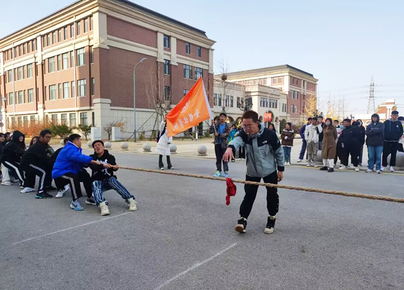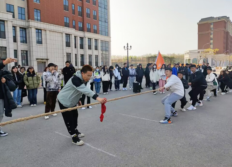 2022年10月25日12点,拔河比赛在主楼广场前如期举行。尽管天气寒冷,但同学们热情不减,助威呐喊,让赛场氛围更加热烈。比赛规则采取三局两胜制度,每班派出14名男女混搭的队员,依次排队站好,当红绳拔过一方起始线,即为获胜。比赛的哨声响起,双方队员全都紧握绳子,憋足了劲把绳子往后拉。啦啦队同学们也在旁边为自己的班级加油呐喊着,都恨不得抓起绳子跟选手一起努力。使得整个场面既激烈又温馨。