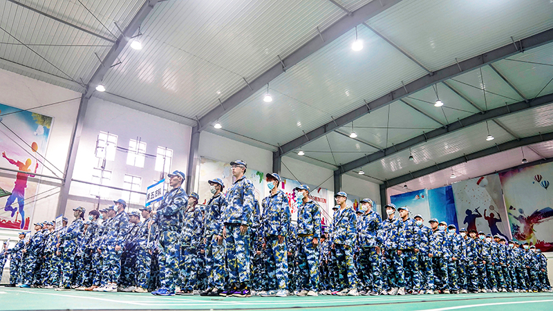 最后,全体新生在学生代表高庆山的带领下郑重宣誓,大会在同学们嘹亮的誓词声中落下帷幕。为期两周的军训即将开始,这是一次锻炼体魄、增强体质、磨练意志、增强集体荣誉感的一次宝贵经历。相信通过这短暂却十分有意义的军事训练,同学们一定能够以良好的精神风貌面对今后的学习和生活,不断学习、不断进步。