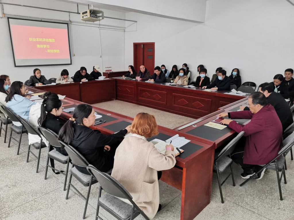 4月19日,财经学院于会议室召开迎评促建政策“学习宣传月”会议,会议由刘晓伟院长主持,学院全体教师参加会议并进行集体学习。