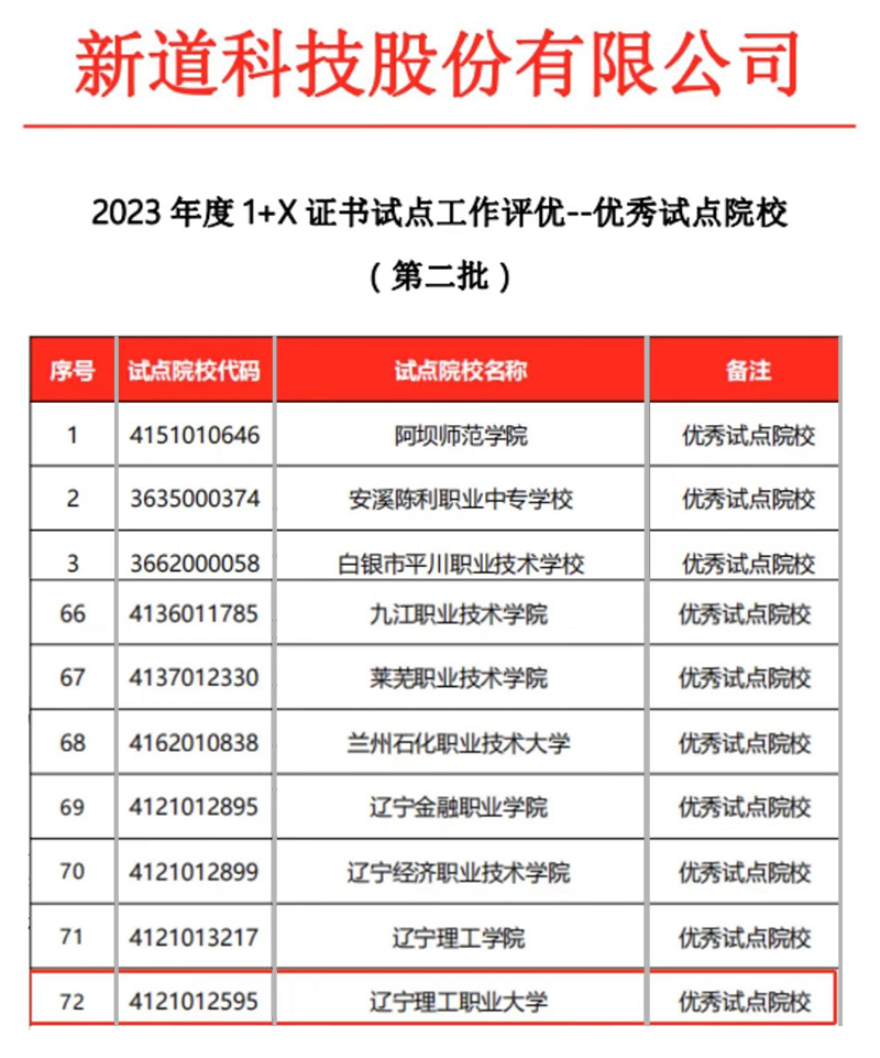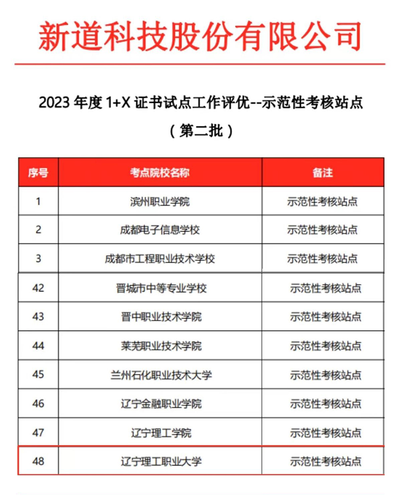 近日,经新道科技股份有限公司认定,beat365被评为2023年度1+X证书优秀试点院校及示范性考核站点。