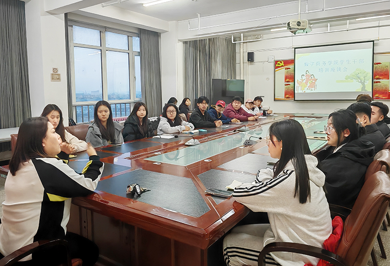 11月11日,数字商务学院召开了学风建设座谈会,就如何加强学院学风建设,营造良好的班级学习氛围展开深入交流与探讨。学院全体2024级班级主要学生干部参与了此次座谈活动。