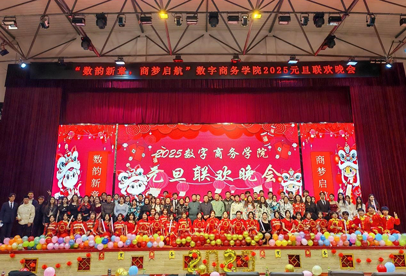 12月25日晚,数字商务学院在南校区文体馆隆重举行“数韵新章,商梦启航”2025年元旦联欢晚会。学院吴景泰院长等主要领导出席本次晚会。全院师生齐聚一堂,用欢笑与热情驱散冬日寒意,共迎新年。