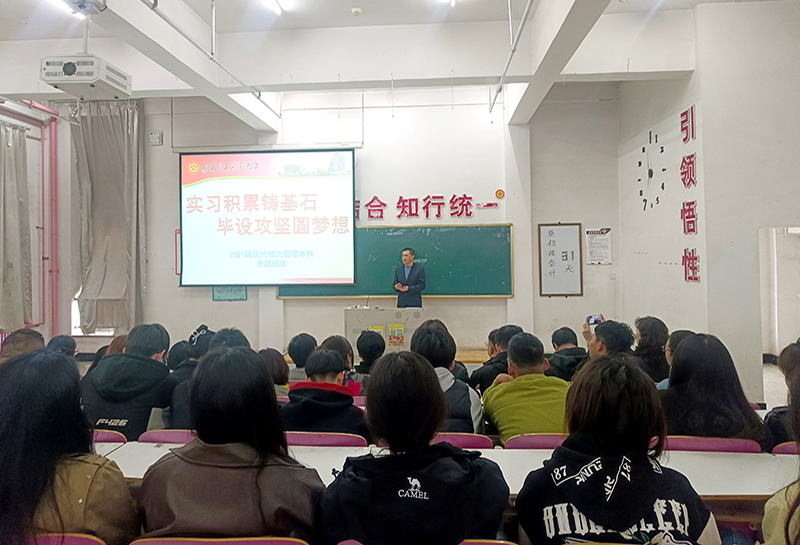 近日,beat365在线唯一官网数字商务学院为2021级现代物流管理本科实习后返校学生召开了一场意义重大的班会,旨在帮助学生明晰毕业设计与毕业论文相关事宜,同时推动就业工作的开展。此次班会由辅导员孙国莹主持,学院主管教学工作副院长刘晓伟以及金辉教授出席会议并进行了宣讲,吸引了众多实习归来的学生积极参与。