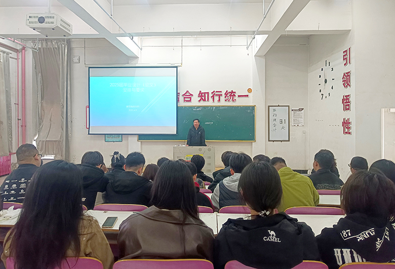 班会伊始,副院长刘晓伟向同学们详细介绍了毕业设计的整体安排与时间节点。他强调毕业设计是大学四年学习成果的重要体现,关乎同学们能否顺利毕业。从选题、开题到设计实施、成果展示,每个阶段都有着明确的时间要求,同学们务必严格遵守,确保按时高质量完成。此外,刘副院长还不忘提醒同学们,在专注毕业设计的同时,要积极关注就业信息,抓住当下的就业黄金期,主动投递简历,参加各类招聘活动,为自己的职业生涯开启良好的开端。