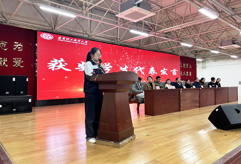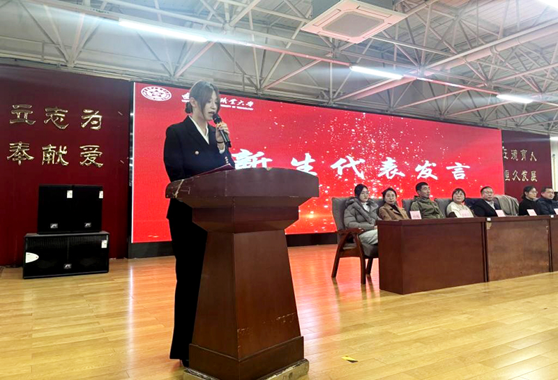 2023级现代物流管理本科一班的方蔷同学作为获奖代表分享了学习心得。她以自身刻苦钻研、积极探索的经历,传递了“明确目标、坚定信念、不懈努力”的成长秘诀,赢得全场共鸣。2025级商务数据分析与应用1班陈思含同学作为新生代表发言,表达了对榜样的敬仰之情,立下了脚踏实地、拒绝“躺平”的青春誓言,展现了新生一代的朝气与决心。