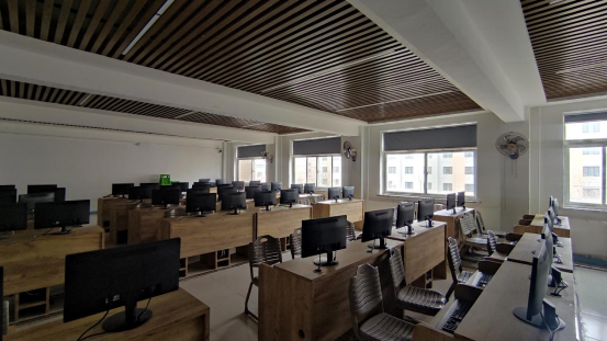 位于实验楼三楼304室,面积115㎡,为电子商务专业所用。配备了电脑,可开展数字媒体交互设计方面的实训,如网页设计、交互界面设计等。