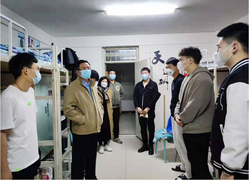 走进学生寝室,时校长与同学们进行亲切交谈,先是询问了学生来自何地,感叹外地学子求学之不易,了解关心同学们封校时期的生活状态,再三叮嘱同学们要严格遵守学校疫情防控各项规定,切实做好个人防护,后又认真倾听同学们针对疫情防控实施的“网格化”管理所提出的意见和建议。同时巡查的领导和老师们对同学封校期间能够理解学校的各项规章制度表示感谢,并希望同学们有困难及时提出,及时解决,提醒同学们要积极调整心态,养成良好的生活习惯,按时认真完成学业任务,做到学习成长“不断线”。