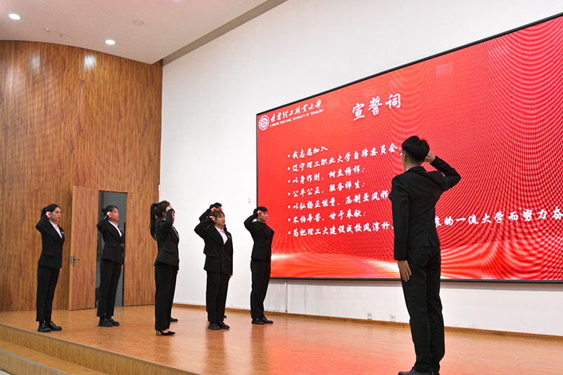 首先由学生处处长王萍为会长授牌并颁发聘书;学生处副处长修力轩为各部长授牌并颁发聘书;各部长为干事授牌并颁发聘书。