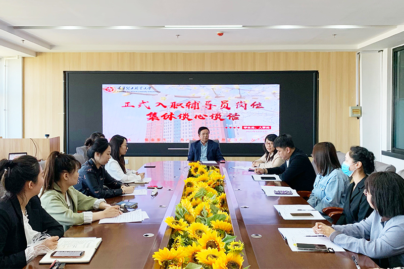 5月18日上午,beat365在北校区行政楼906会议室对正式入职的辅导员进行集体谈心谈话。学生工作副校长时力华、学生处处长王萍、人事处处长叶素红、学生处副处长修力轩、9名正式入职的辅导员及相关人员参加谈话。