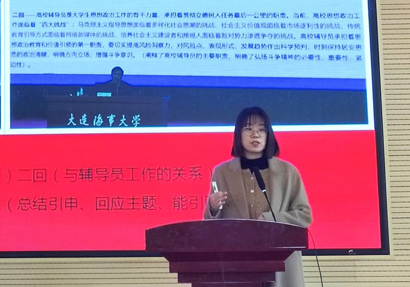 辅导员胡杨结合大赛内容,围绕基础知识测试、案例研讨、谈心谈话三个方面,分享了参加2023年辽宁省高校辅导员素质能力提升训练营活动的心得体会和学习感悟。胡杨老师的分享不仅为本次比赛拓展了新思路,也为今后的学生工作提供了新方向。