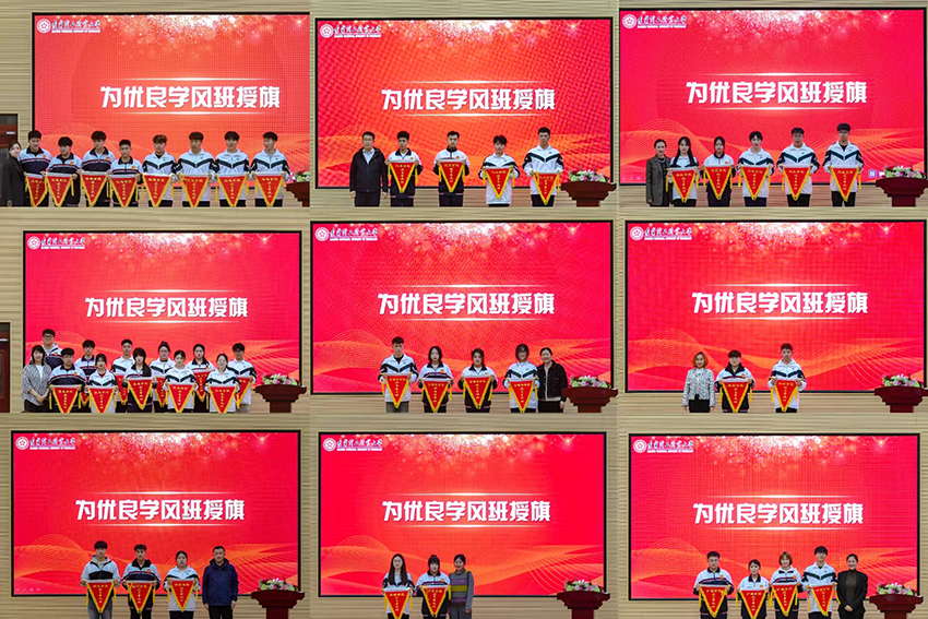 大会在激昂嘹亮的国歌声中拉开了帷幕,时校长公布了本次受表彰的优良学风班级名单,各学院主管学生工作的副院长对本学院荣获优良学风班称号的班级进行授旗,小小的红旗不仅是荣誉的象征,更是学风建设榜样的标志,用榜样的力量来激发学生的学习动力,为beat365学风建设树立正确的价值导向。