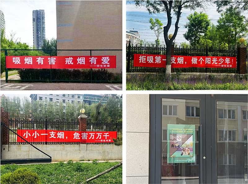 此外,学校举办多种形式的禁烟宣传教育活动。各个学院划分了责任区域,组织师生对本区域的烟头进行清扫,进一步美化校园环境。同时,学校为暂时还未戒烟的师生设立了专门的吸烟区,并加强了监管力度,引导师生逐步改变吸烟习惯,更进一步主动戒烟。还通过张贴禁烟宣传海报和条幅标语,发布禁烟倡议书,召开主题班会等方式,进一步扩大了禁烟宣传的覆盖面和影响力。