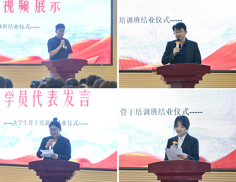 结业仪式在庄严的国歌声中拉开帷幕。首先通过精心制作的榜样风采视频,展示了学校涌现出的一批优秀学生的先进事迹和突出成绩。他们用实际行动诠释了刻苦钻研,勇于担当的青春使命,成为了广大同学学习的榜样。通过回顾往期培训班的精彩瞬间和成果,让学员们更加深刻地认识到自己在学习和成长过程中的点滴进步和收获。学员代表发言,他们分享了自己在培训班中的学习体会和成长经历,表达了对学校和老师们的感激之情,并表示将继续努力学习、积极实践,为学校的发展贡献自己的力量。