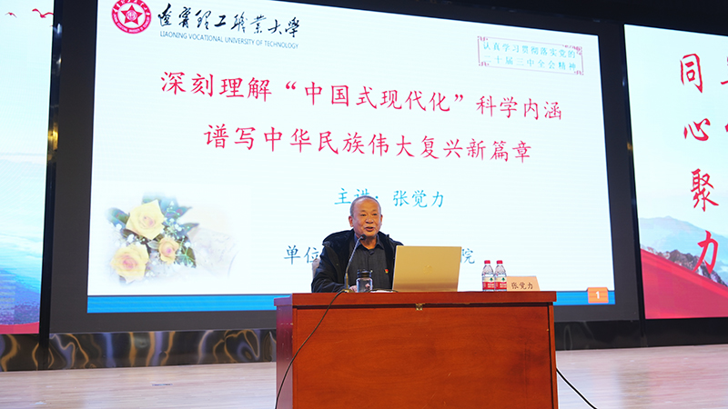 马克思主义学院院长张觉力教授为培训班带来第一讲,主题为《深刻理解“中国式现代化”科学内涵,谱写中华民族伟大复兴新篇章》。张教授以《中共中央关于进一步全面深化改革推进中国式现代化的决定》为背景,深入浅出地阐述了中国式现代化的科学内涵和重要意义。他从中国近代史的角度出发,详细讲解了中国式现代化的历史背景和发展脉络,并具体分析了中国式现代化的中国特色和道路选择。张教授在讲授中强调,“中国式现代化”是中国共产党领导的社会主义现代化,具有独特的中国风格。我们要在实现中华民族伟大复兴的新征程上,不断谱写新的篇章,贡献自己的力量。