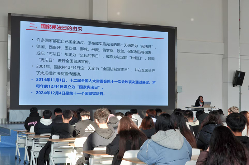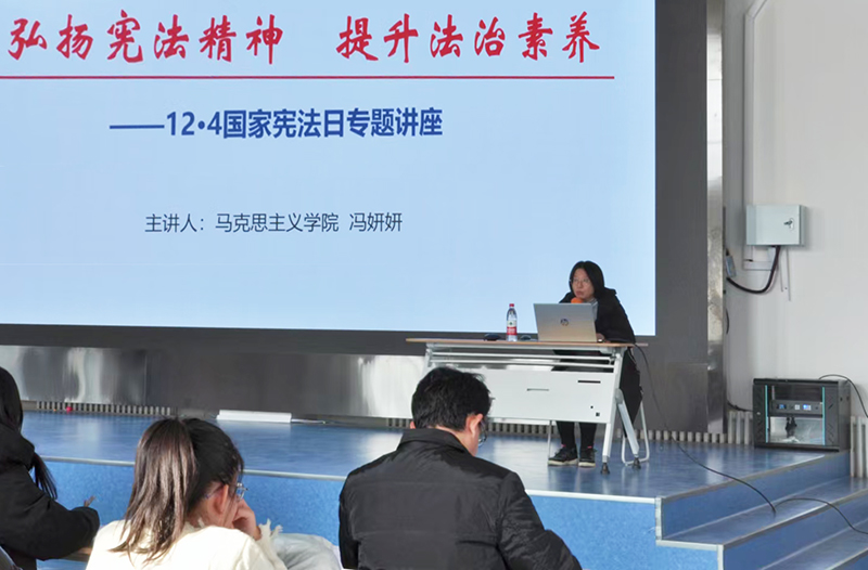 马克思主义学院冯妍妍副教授为培训班带来第二讲,主题为《弘扬宪法精神、提升法治修养—12.4国家宪法日专题讲座》。冯副教授以宪法的形成和发展为基础,循序渐进地讲解了我国国家宪法的概念、性质与特点。她从我国宪法的内容为切入点,详细讲解了我国宪法形成的历史背景和发展脉络,并对宪法的基本原则和宪法规定的公民的基本权利做了细致的讲解与普及。