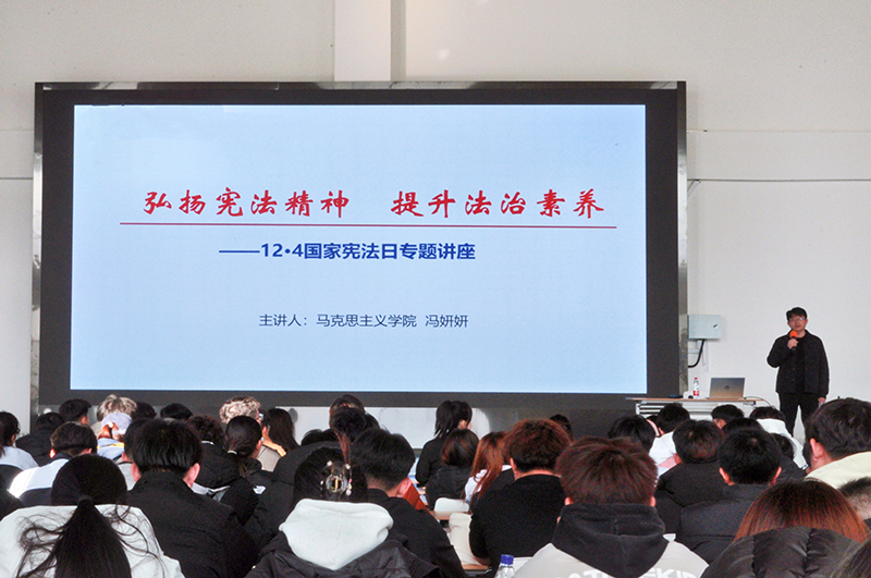12月4日下午,学生处邀请马克思主义学院冯妍妍副教授为学生骨干作了题为《弘扬宪法精神 提升法治素养》的宪法专题讲座。冯教授围绕国家宪法日概述、宪法基本知识解读、提升法治素养三个方面,结合实际案例,深入浅出地阐述了对宪法的深刻理解以及宪法在国家法律体系中的基石地位,为同学们带来了一场既有理论探索又有实践深度的精彩法治课。