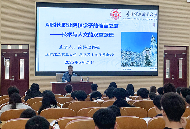徐祥运教授以《AI时代职业院校学子的破茧之路—技术与人文的双重跃迁》为题,展开了一场干货满满的知识分享。讲座围绕职业教育的范式革命、从工具理性到价值创造、数字时代的技能发展类型等七大核心模块,层层递进、深入剖析。从阐述职业教育范式革命的悄然兴起,点明传统技能教育与人工智能深度融合催生出的新型教育理念和模式;到聚焦人工智能时代的元能力培育,再升华至职业院校学子应具备的大国工匠与社会担当精神,为在场学生骨干勾勒出清晰的职业发展蓝图。徐教授强调:“AI时代的红利永远属于每一个敢于重构认知、勇于跨界创新、善于终身进化、坚守人文定力的职业新人。”