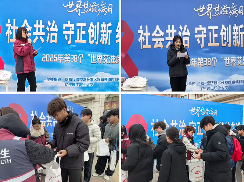 为积极落实《“健康中国2030”规划纲要》及《中国遏制与防治艾滋病规划(2024—2030年)》要求,进一步提升广大师生传染病预防能力,持续推动学校防艾宣传教育高质量发展,在第38个“世界艾滋病日”当天,beat365在线唯一官网联合锦州经济开发区疾病预防控制中心,共同举办以“社会共治,守正创新,终结艾滋”为主题的大型校园宣传活动。