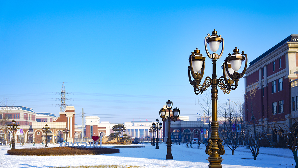 晴衬红墙彰雅韵 径连楼宇沐天光