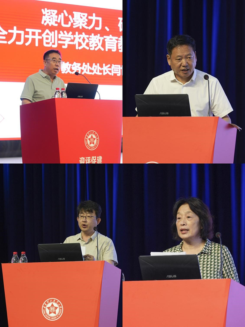 在表态发言环节,教务处处长闫世杰、校企合作办公室主任梁涛、学生处处长朱磊、智能制造学院院长张波等先后发言。各部门负责人立足本职工作,围绕教育教学改革、产教融合深化、学生管理服务、专业建设达标等方面,表达了全力以赴、攻坚克难的决心和信心。