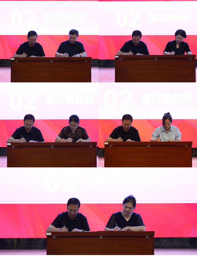 在庄重的签字仪式环节,王忠诚校长与汽车工程学院、马克思主义学院、财务处、总务处、教师发展中心等五个单位负责人现场签订了观测点责任状。一纸责任状,千钧使命担,这份签字不仅是对工作的承诺,更是对学校未来发展的庄严保证。其余单位的责任状将在会后签署。