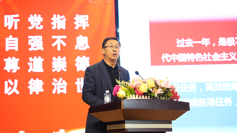 报告最后,他号召全校教职工在董事会的领导下,在党委的保证监督下,在行政领导班子的带领下,自强不息,守正创新,脚踏实地,埋头苦干,以学校提质达标的优异成绩,为辽宁教育全面振兴新突破三年行动首战告捷贡献力量。