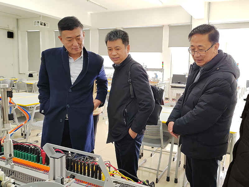 学校领导陪同企业方参观了机电学院实训中心,随后在行政楼906会议室召开了校企双方合作会谈。王忠诚校长与王振华总裁分别就学校与企业的现状与发展做出介绍,双方领导围绕建立“未来产业技术学院”与“专精特新产业学院”及国家级赛事举办、教育部课题申报、1+X”证书推广中心建设、师资交流和学生实践基地建设、培训基地建设、科研创新等方面内容进行洽谈。