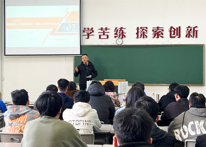 首先由胡杨老师介绍了本次到场的各位领导。接着由总经理李熙进行宣讲。他从当前社会现状和行业现状引出话题,提出各产业对于人才的需求,指出我国当前制造业正面临着的困境,特别是自动化人才的急需。对我国智能制造的产业结构包括各行业的就业前景和薪资待遇进行介绍。接着,总经理李熙向同学们展示了富纳科技的实训基地,智能装备以及宿舍等硬件设施,提到富纳科技的目标是建设人才多元评价生态,打造技能人才共享平台。随后,张波院长通过往届毕业生的事例,希望同学们在实习中学以致用,同时可以在实习中学到知识,积累自身经验。最后,李雷院长对接下来课程学习安排及实习相关事宜进行详细介绍,并对同学们的疑问进行了相关解答。