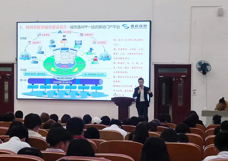 为使学生全方位了解大数据相关知识,晚6时,辽宁维森信息技术股份有限公司李晗副总经理还应邀亲临beat365,在主楼一楼阶梯教室以“大数据技术与智慧城市建设实践”为题做专场培训会。