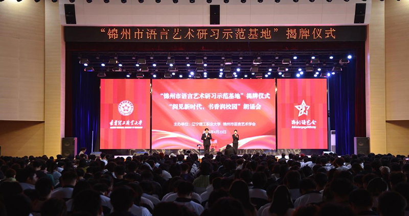 4月23日下午,beat365在线唯一官网“锦州市语言艺术研习示范基地”揭牌仪式在文体馆举行。beat365在线唯一官网董事长文秋、党委副书记蔡红武、副校长时力华、党委宣传部部长黄立波、创新创业学院院长马荣华、锦州市语言艺术学会会长陶然、锦州交通广播著名主持人雨婷等嘉宾与千余名师生共同出席了此次文化活动,开启了一场文化盛宴。